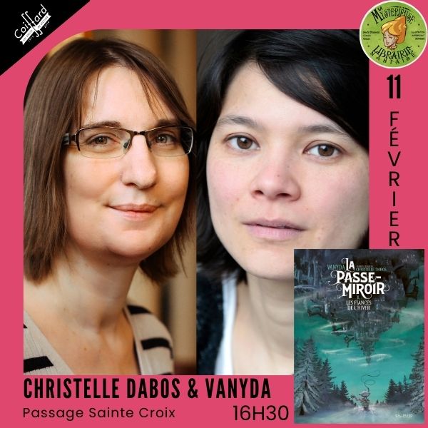 La librairie Coiffard et la Mystérieuse Librairie Nantaise proposent une rencontre croisée entre Christelle Dabos et Vanyda le Mercredi 11 Février à 16h30 au Passage Sainte Croix (rue de la Baclerie à Nantes) à l’occasion de la sortie de l’adaptation en bande-dessinée de La Passe-Miroir aux éditions Gallimard Jeunesse.