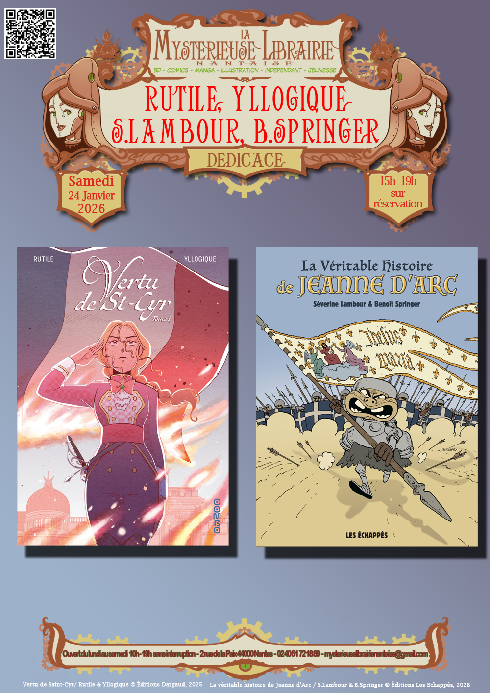 Rutile et Yllogique raconte dans « Vertu de Saint-Cyr » le parcours difficile de Vertu Dumas dans un lycée militaire français où harcèlement rime avec tradition. Les autrices dédicaceront le premier tome de cette série parue dans la collection Combo des éditions Dargaud